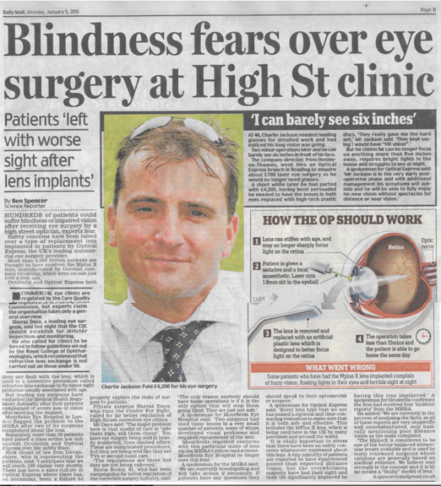 As well as numerous legal claims now being processed, the press and media want to interview patients who are suffering problems with these lenses.
