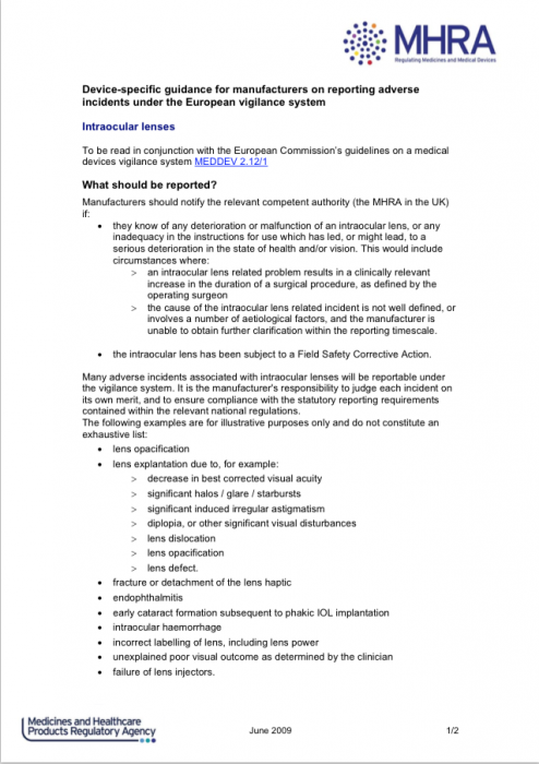 Once I realised OE were fobbing me off, I wrote to Oculentis in May '13, detailing my symptoms and unacceptable level of poor vision along with all the visual disturbances. They did reply, apologising for the inconvenience caused and explained that the side effects are due to the multifocal design. There was no mention of reporting my complaint to the MHRA and I have not heard from them since.